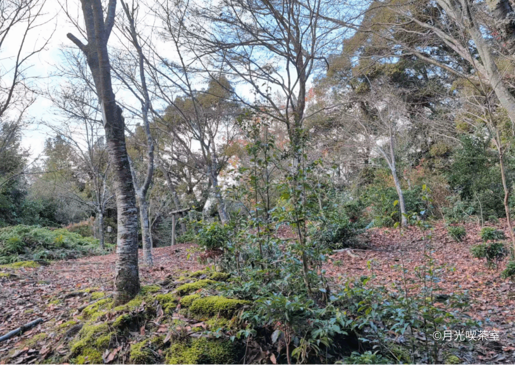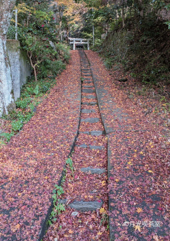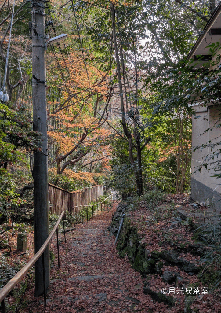 桜花苑への階段には落ち葉が敷き詰められ、