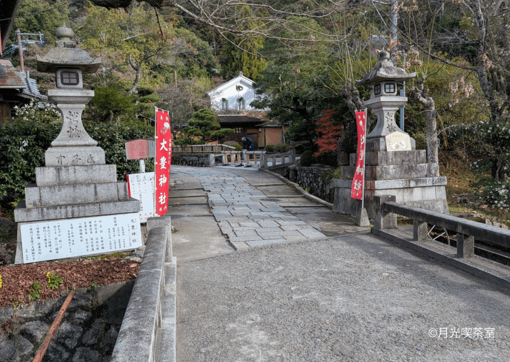 橋を渡った先が、大豊神社の参道入口です。