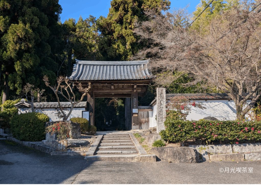 民家の立ち並ぶ道を抜け、少し山沿いの道を歩いていると、ふっと門が現れます。