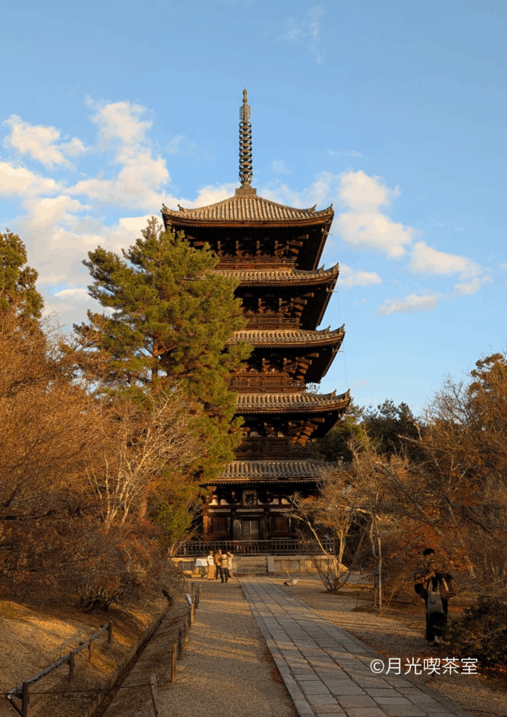 国宝の金堂や五重塔、御所庭園など、広大な境内に見どころが点在しています。