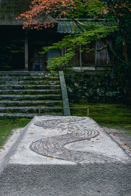 門をくぐるとまず目に入るのが、白砂で描かれた模様「白砂壇」。