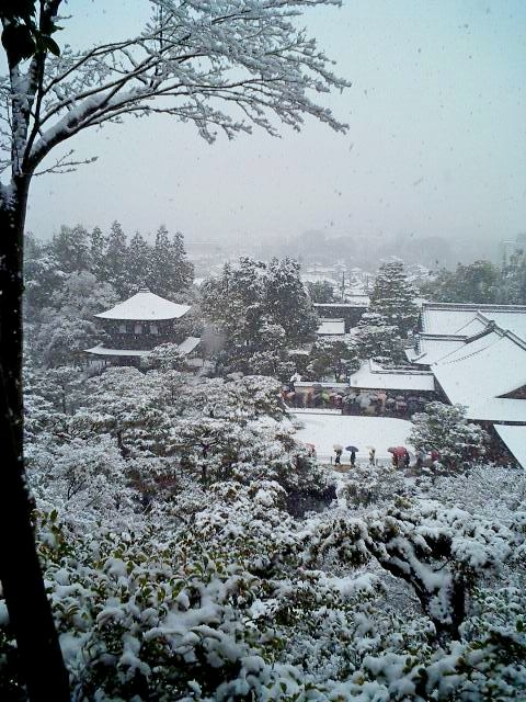 - 雪化粧の銀閣(観音殿) 銀閣は実際には銀箔が施されていませんが、雪をかぶった姿はまるで白銀の衣をまとったよう。金閣寺の豪華絢爛とは対照的に、控えめながら深い美しさを感じさせます。