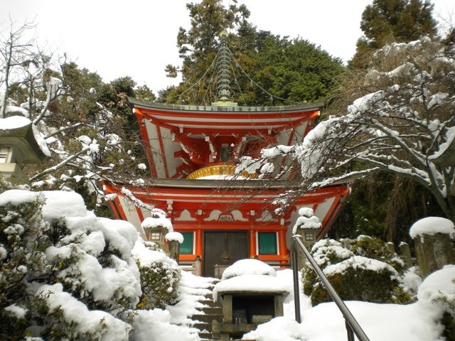 鞍馬寺は標高400m近い山中にあり、冬は雪景色がよく似合います。