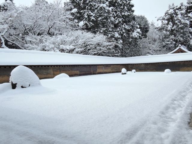 雪に覆われた石庭は、まるで心の奥にある“無”の景色のようです。