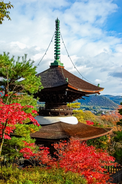 また、多宝塔の周辺は高台になっており、京都市街を背景に紅葉を望むことができるのも魅力。静かな山寺のような空気感と、街を一望できる開放感の両方を楽しめます。