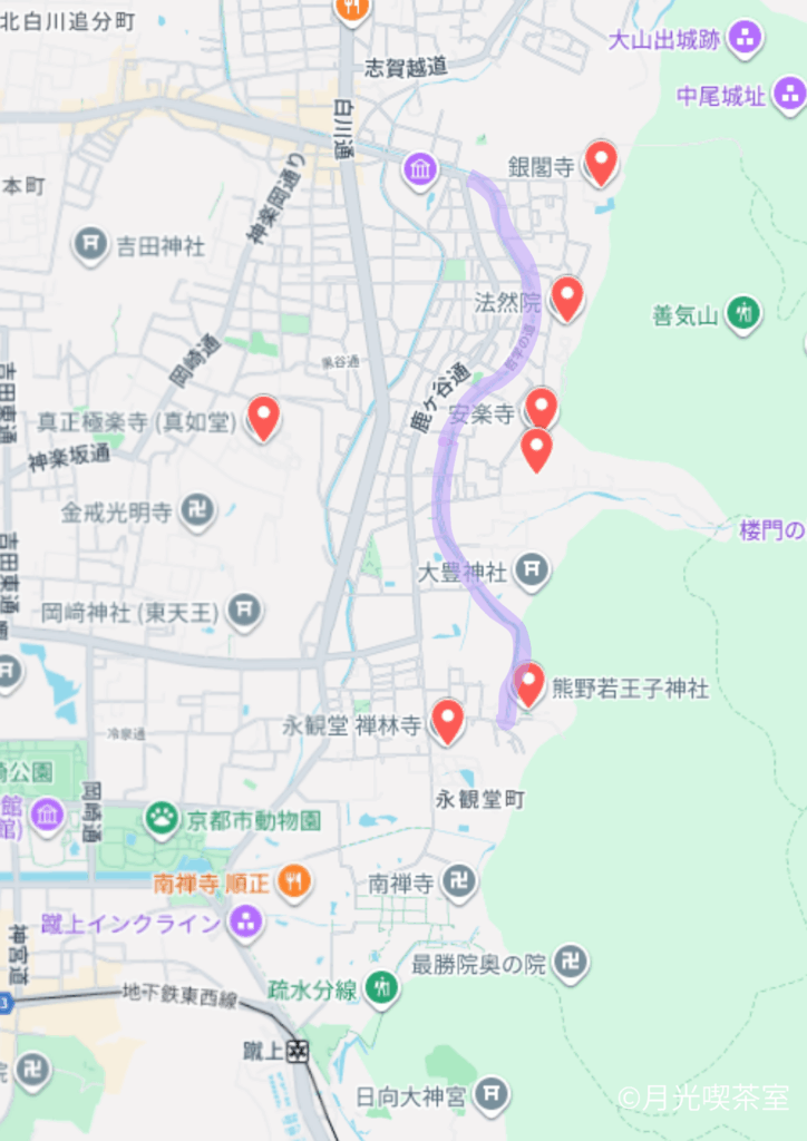 銀閣寺 → 法然院 → 安楽寺 → 霊鑑寺 → 若王子神社